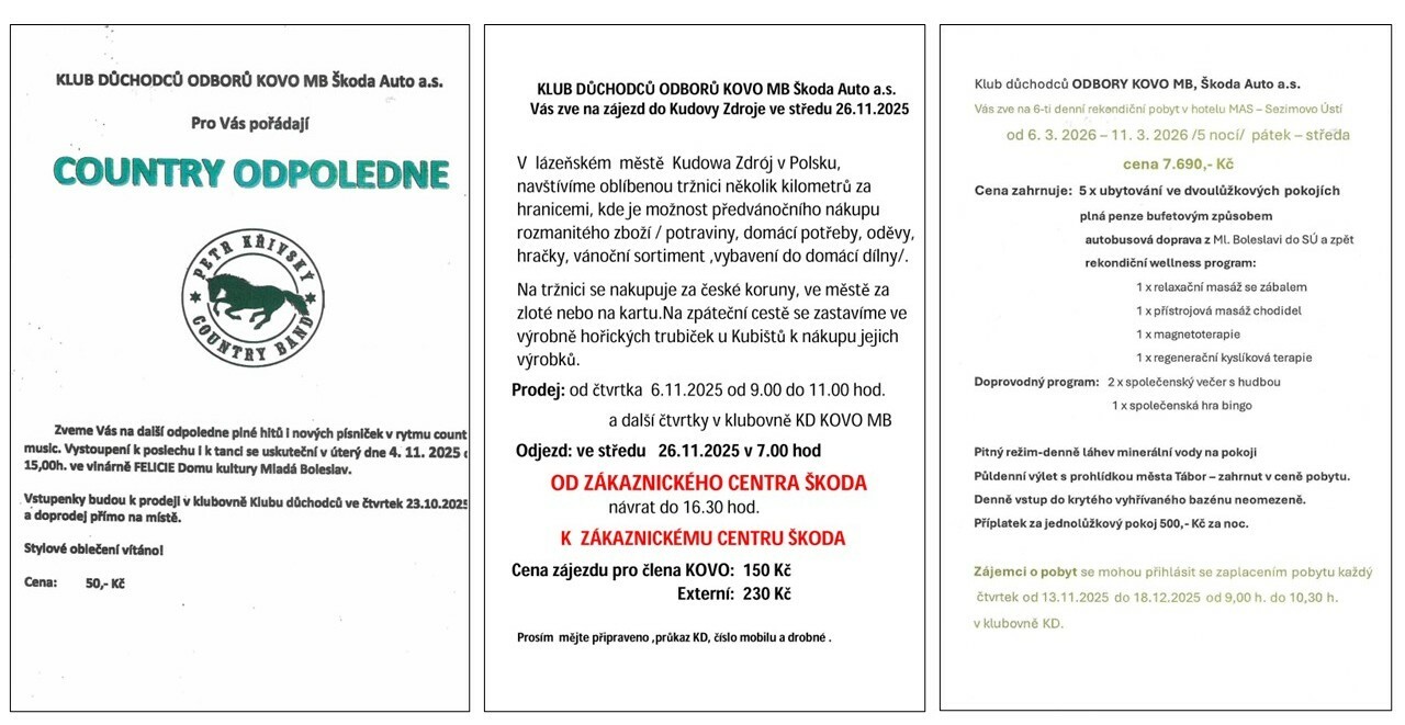 Pozvánky Klubu důchodců Škoda Auto a. s.