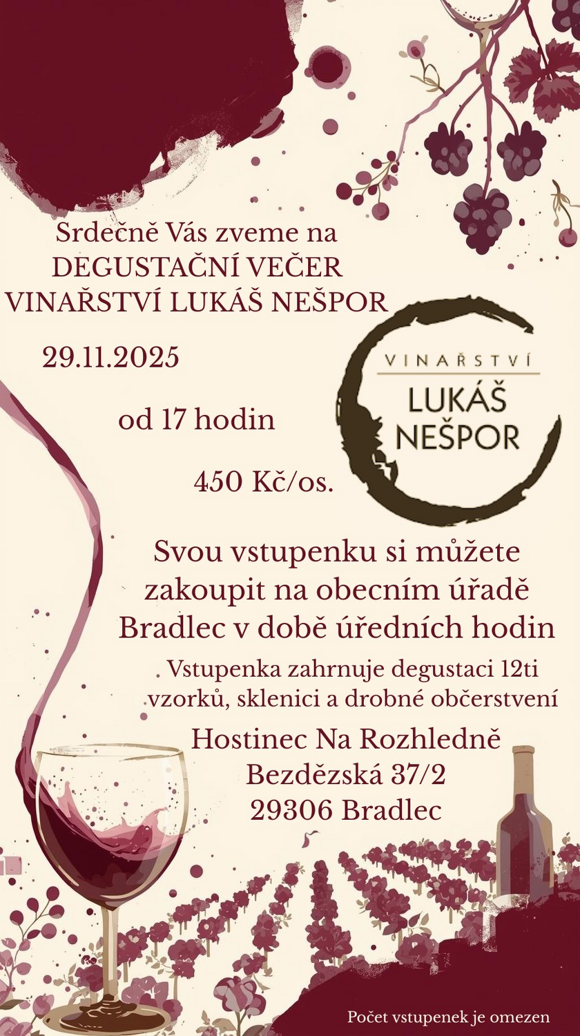 Zastupitelé obce Bradlec Vás zvou na degustační večer do obecního hostince.