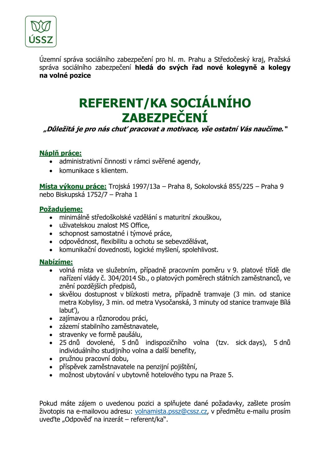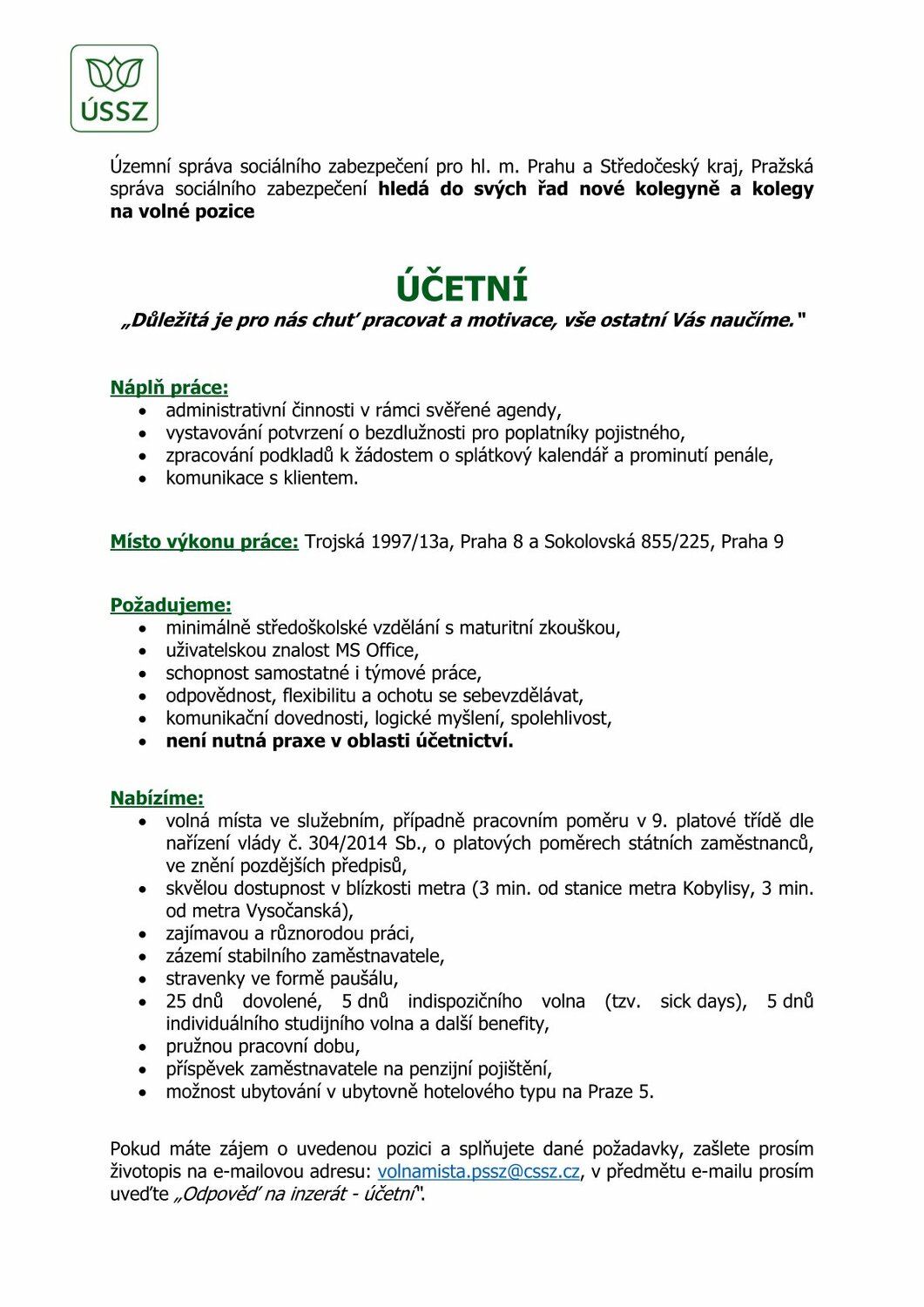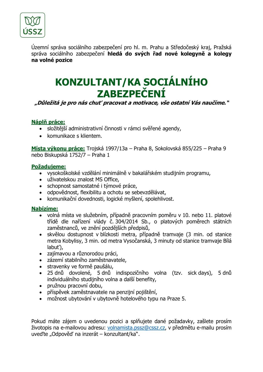 Nabídka volných pracovních pozic na ÚSSZ - konzultant, referent, účetní